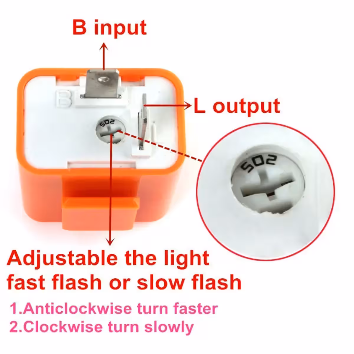 Sähköinen suuntavilkku-rele, yhteensopiva LED- ja perinteisten polttimoiden kanssa, 2-napainen, 12V, säädettävä.