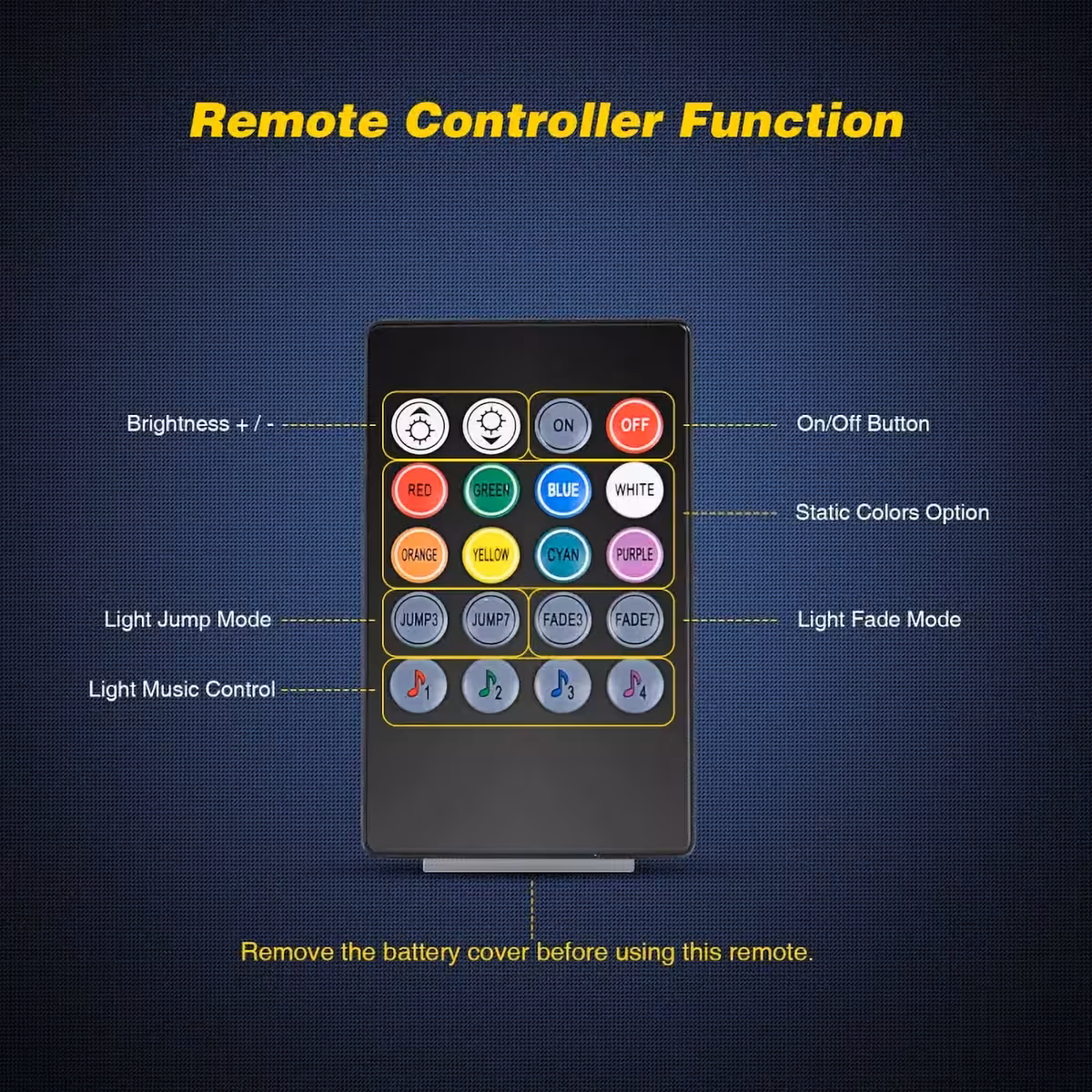 - Ohjain integroidulla äänisensorilla – valot pulssittavat musiikin rytmissä luoden elävän ja hauskan tunnelman.
