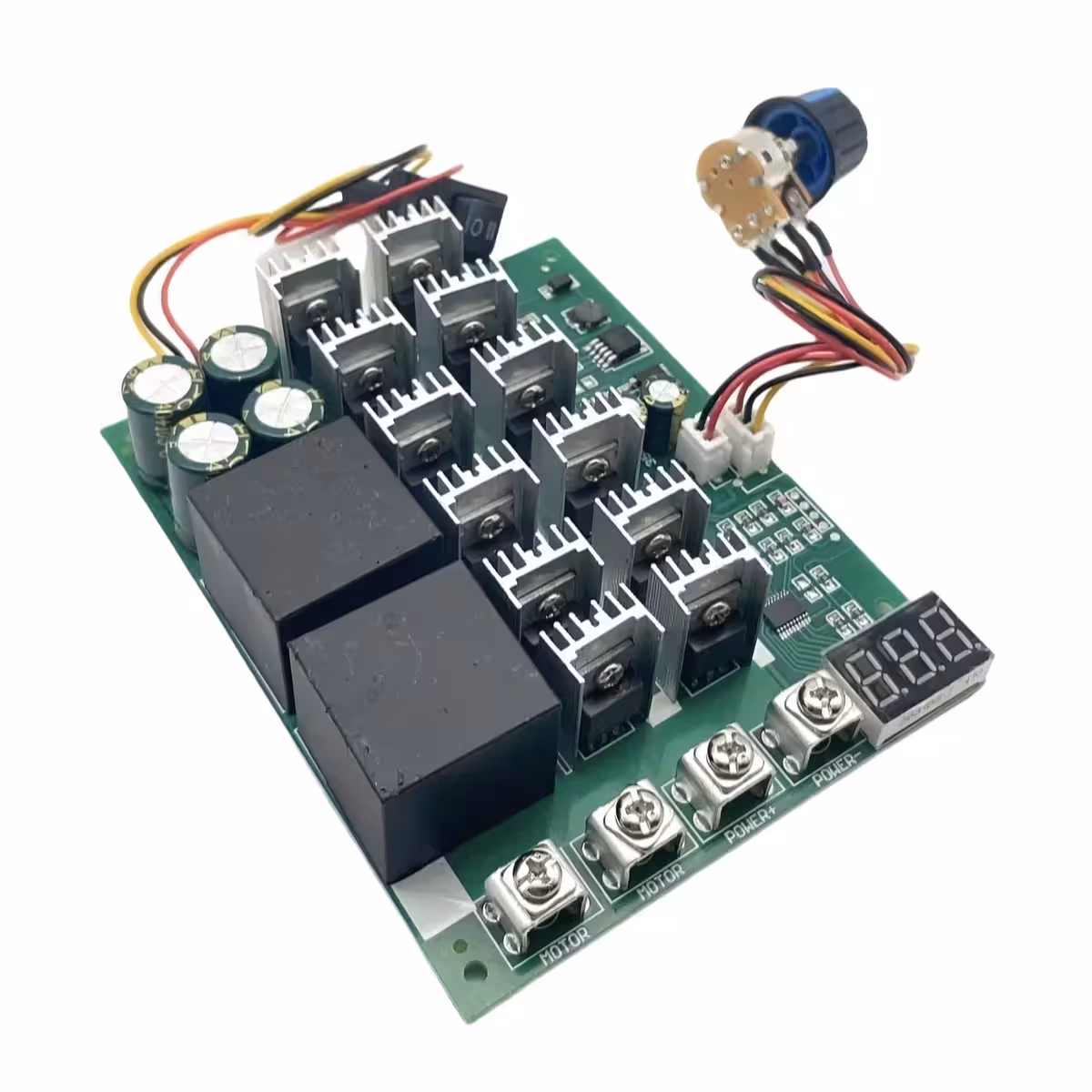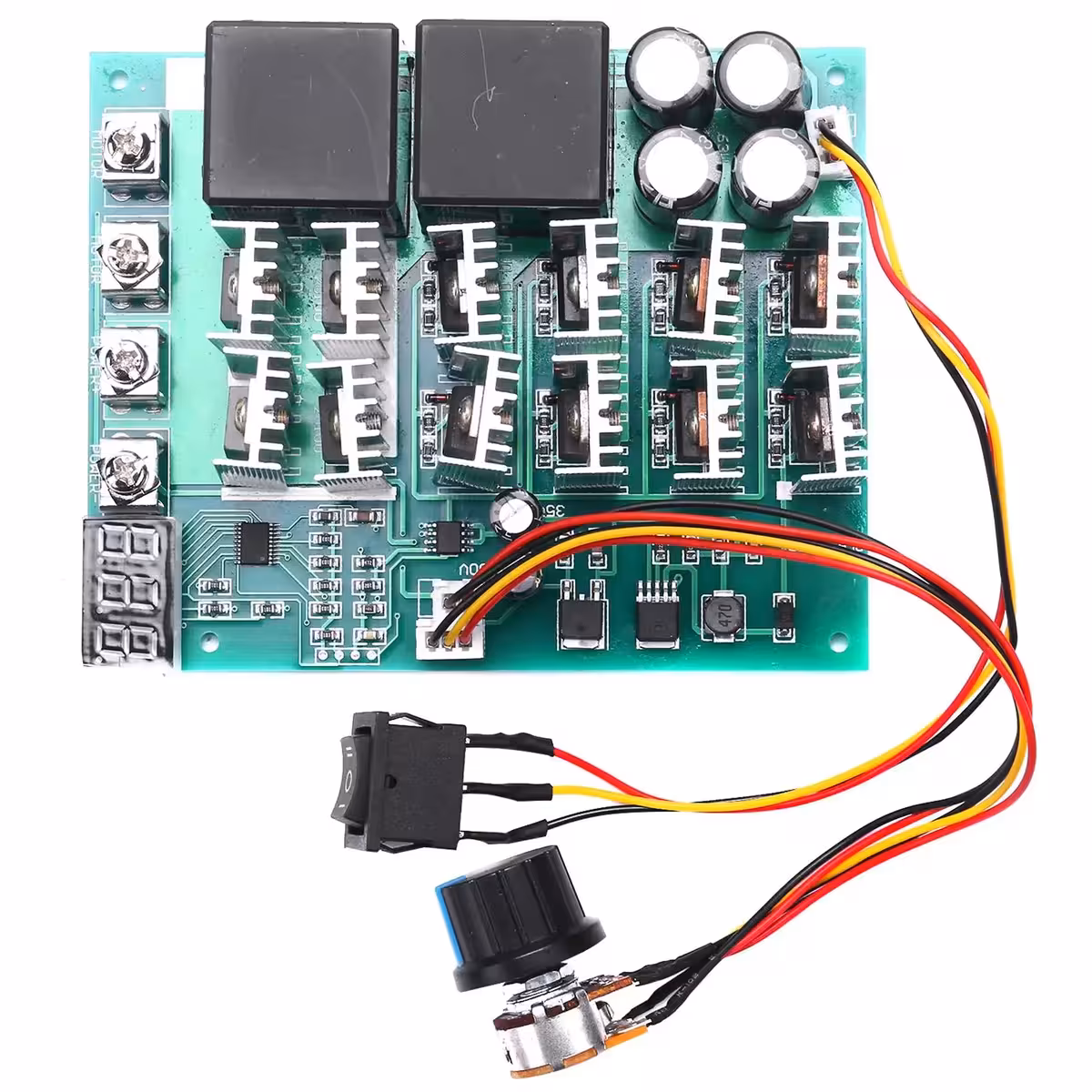 Tämän säädin toimii oikein vain, kun kuorma (moottori) on kytketty. Ihanteellinen projekteihin, jotka vaativat tarkan DC-moottorien ohjauksen, mukaan lukien HHO-järjestelmät, elektrolyysiprosessit ja muut teolliset sovellukset.