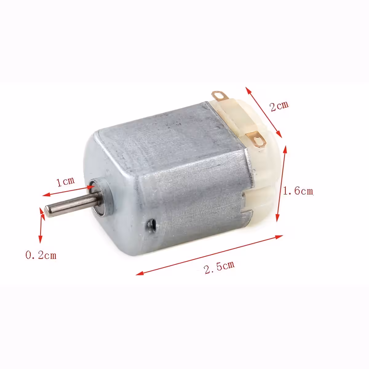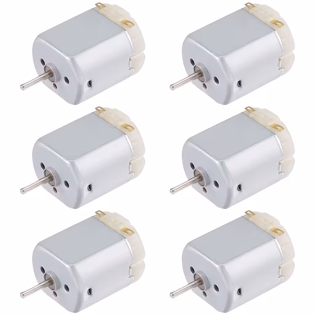 Setti sisältää 6 Mini DC 130 -moottoria, jotka ovat ihanteellisia opetusprojekteihin, robotteihin, tuulettimiin ja yksinkertaisiin mekanismeihin. Toimii 3–6 V DC jännitteellä, tarjoten korkean kierrosluvun ja kompaktit mitat. Akseli Ø2 mm × 8 mm on yhteensopiva standardien mikro-moottoripyörien ja hammaspyörien kanssa.
