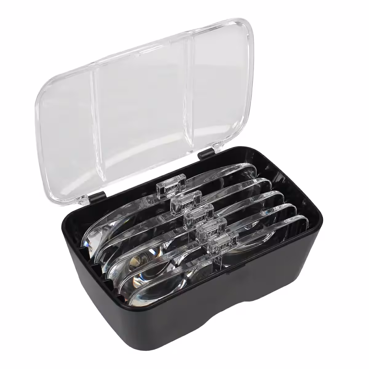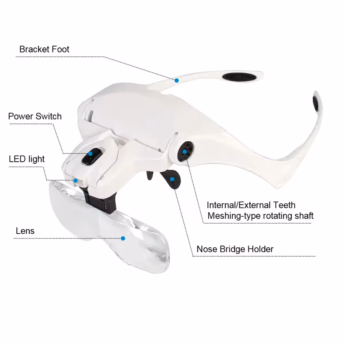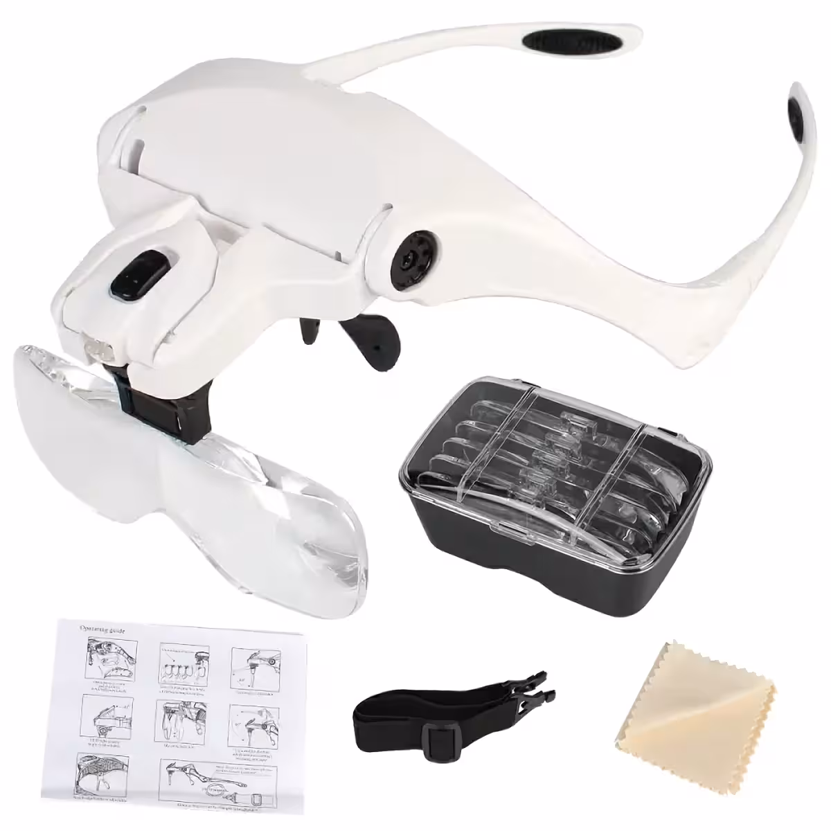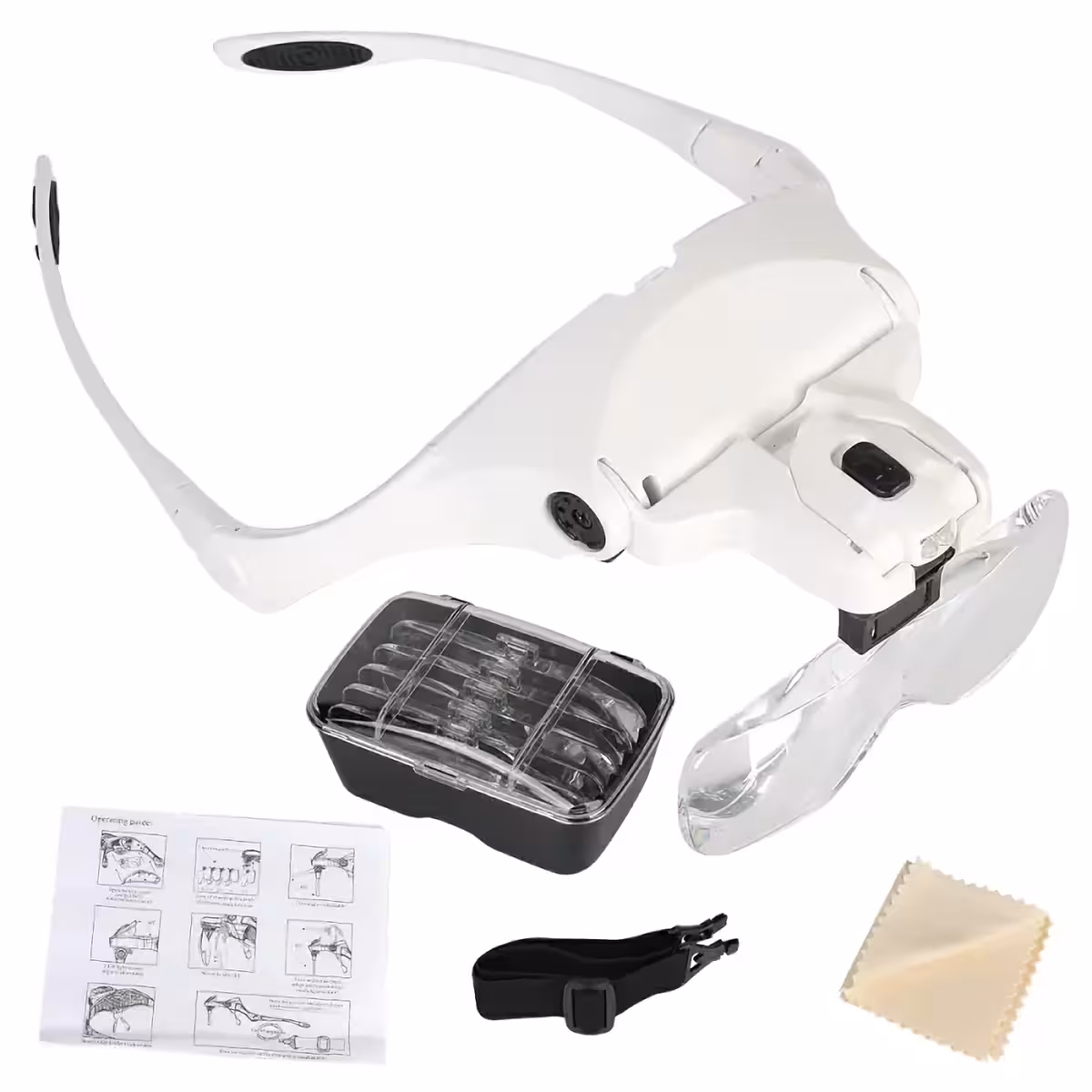 Nämä suurennuslasilasit ovat ihanteelliset kellosepille, elektroniikkaharrastajille, korusepille, hammaslääkäreille tai muille harrastajille, jotka tarvitsevat tarkkuutta vaativia töitä. Lasit sisältävät viisi vaihdettavaa linssiä (1.0X, 1.5X, 2.0X, 2.5X, 3.5X) ja säädettävän LED-valon selkeään näkymään kaikissa olosuhteissa.
