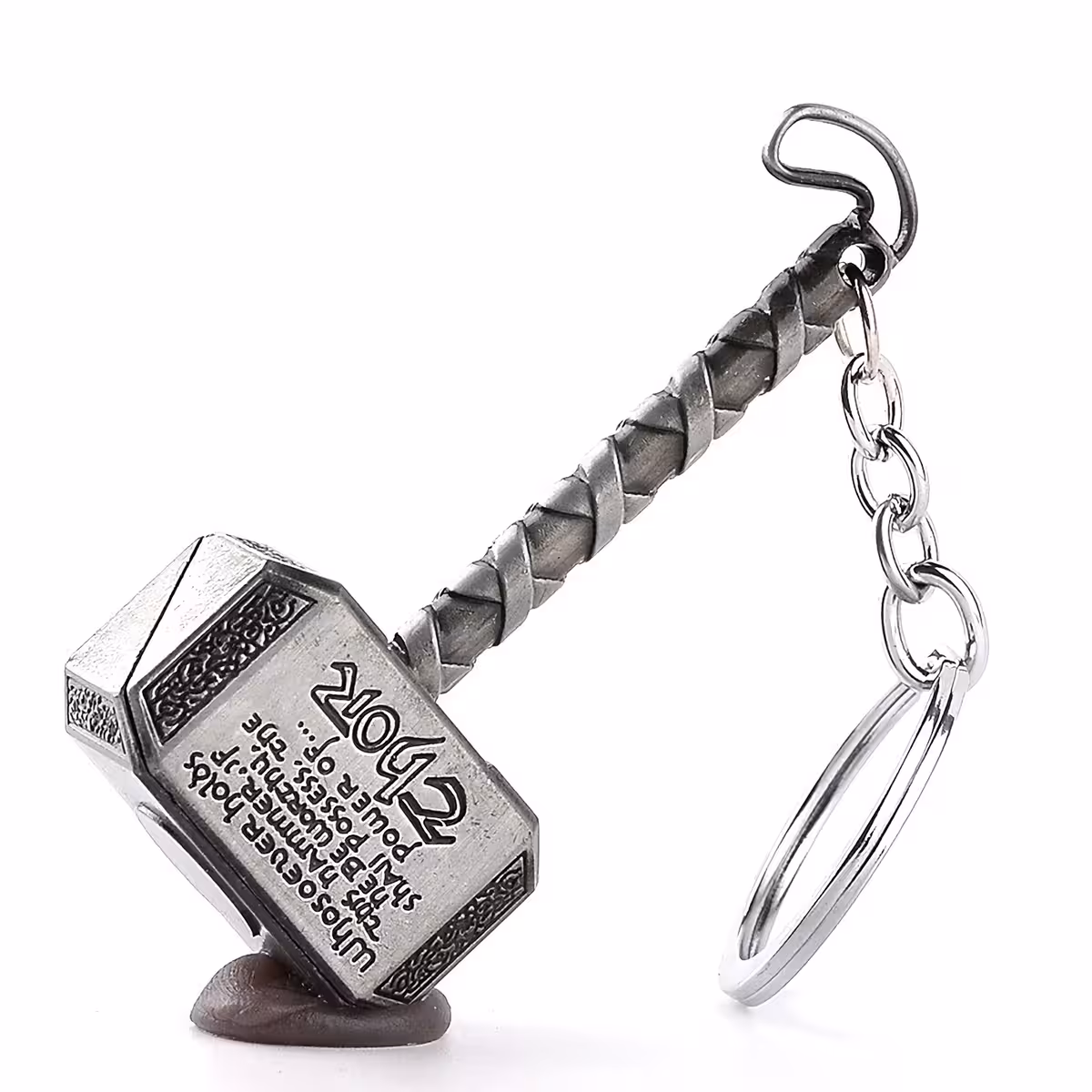 Thor, Marvelin universumin myrskynjumala, tuo suojan ja tyylin tähän legendaarisen Mjolnir-vasaran muotoiseen avainperään. Täydellinen lisävaruste Marvel-faneille, jotka haluavat pitää avaimensa turvassa ja samalla näyttää intohimonsa supersankariuniversumiin.