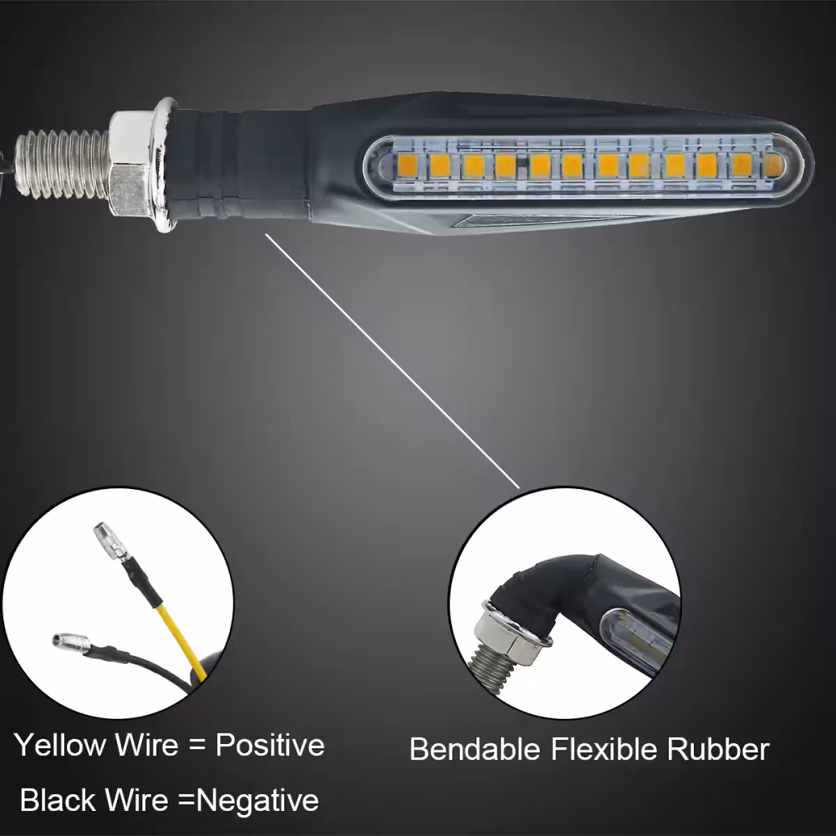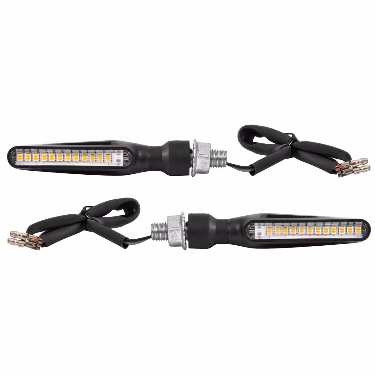 Universaali sarja dynaamisia LED-moottoripyörän suuntavilkkuja, joissa on sekvenssiefekti. Yhteensopiva moottoripyörien, skoottereiden ja ATV-ajoneuvojen kanssa. Moderni muotoilu selkeillä reunoilla ja sulavilla linjoilla antaa tyylikkään ulkonäön, ja LED-teknologia takaa alhaisen energiankulutuksen sekä kirkkaan valon maksimaalista näkyvyyttä varten.