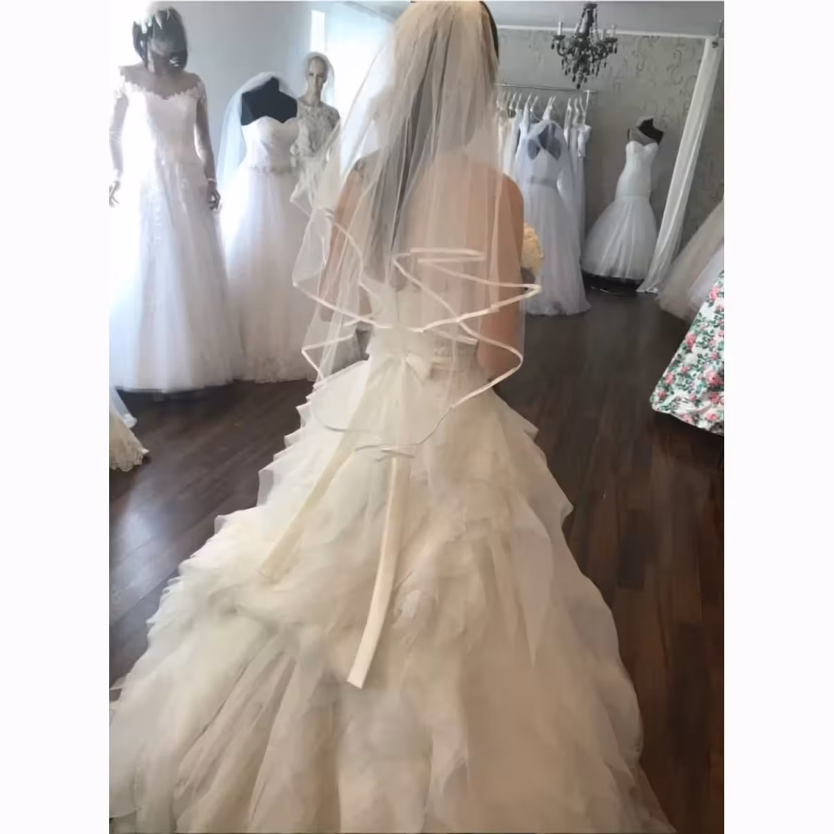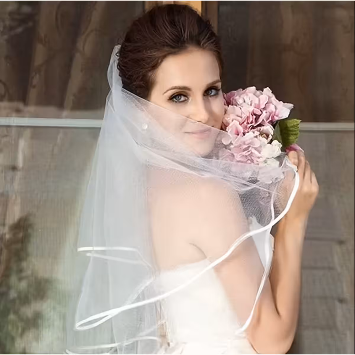 Upea hääsuihku, ihanteellinen vuoden 2025 häihin, valmistettu korkealaatuisesta hienosta tyllistä ja viimeistelty elegantilla reunalla. Tämä valkoinen hääsuihku on suunniteltu erityisesti moderneille morsiamille, jotka haluavat tyylikkään ja käytännöllisen asusteen.